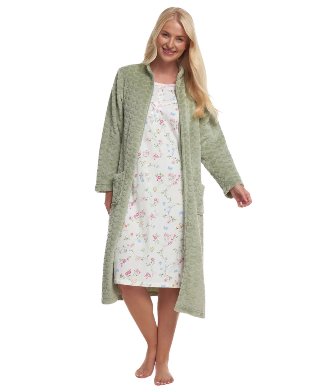 LUXURY EMBOSSED FLEECE ZIP DRESSING GOWN